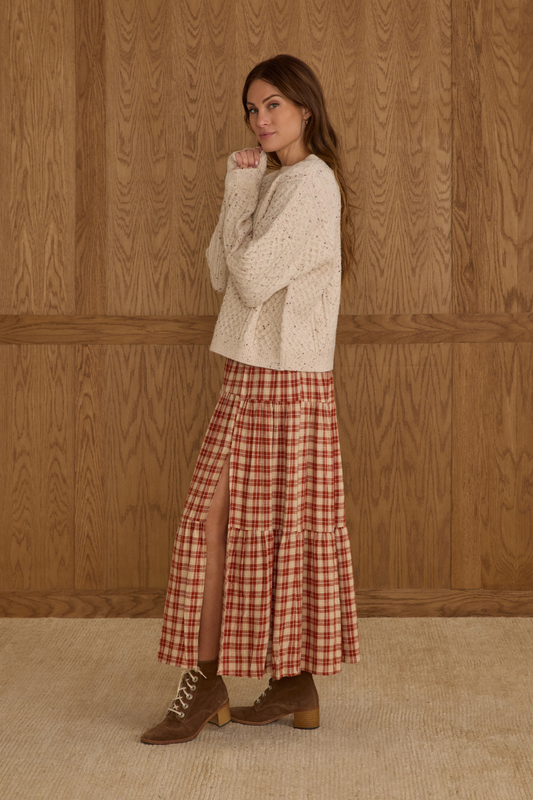 Tiered Midi Skirt | Red Plaid
