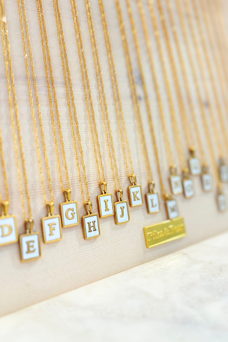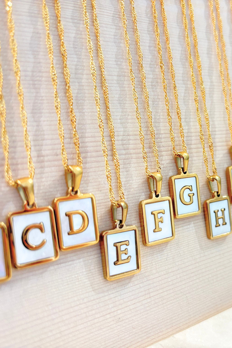 These initialed, mother of pearl inlayed charm necklaces are a classic, and elegant touch to compliment your everyday style.
