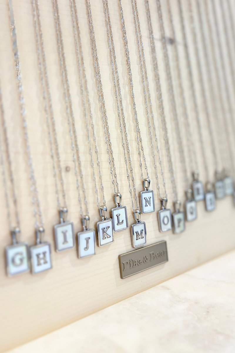 These initialed, mother of pearl inlayed charm necklaces are a classic, and elegant touch to compliment your everyday style.
