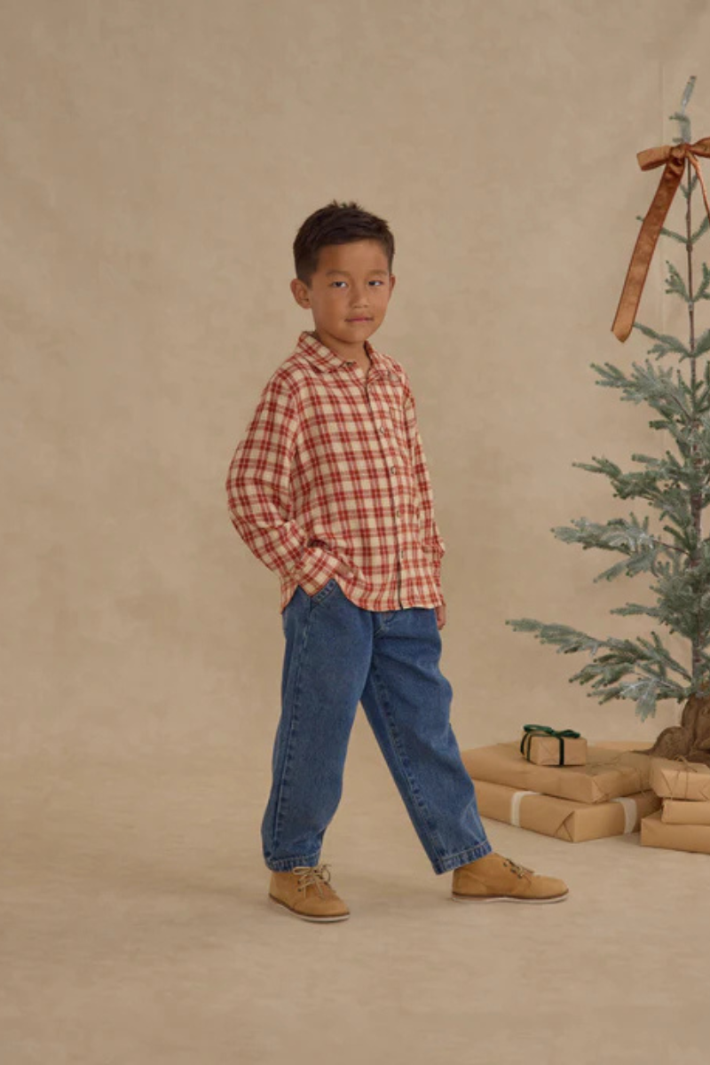 A collared button-up shirt with long sleeves and a tailored chest pocket—an effortlessly classic staple for every wardrobe. Featured in a red plaid print.