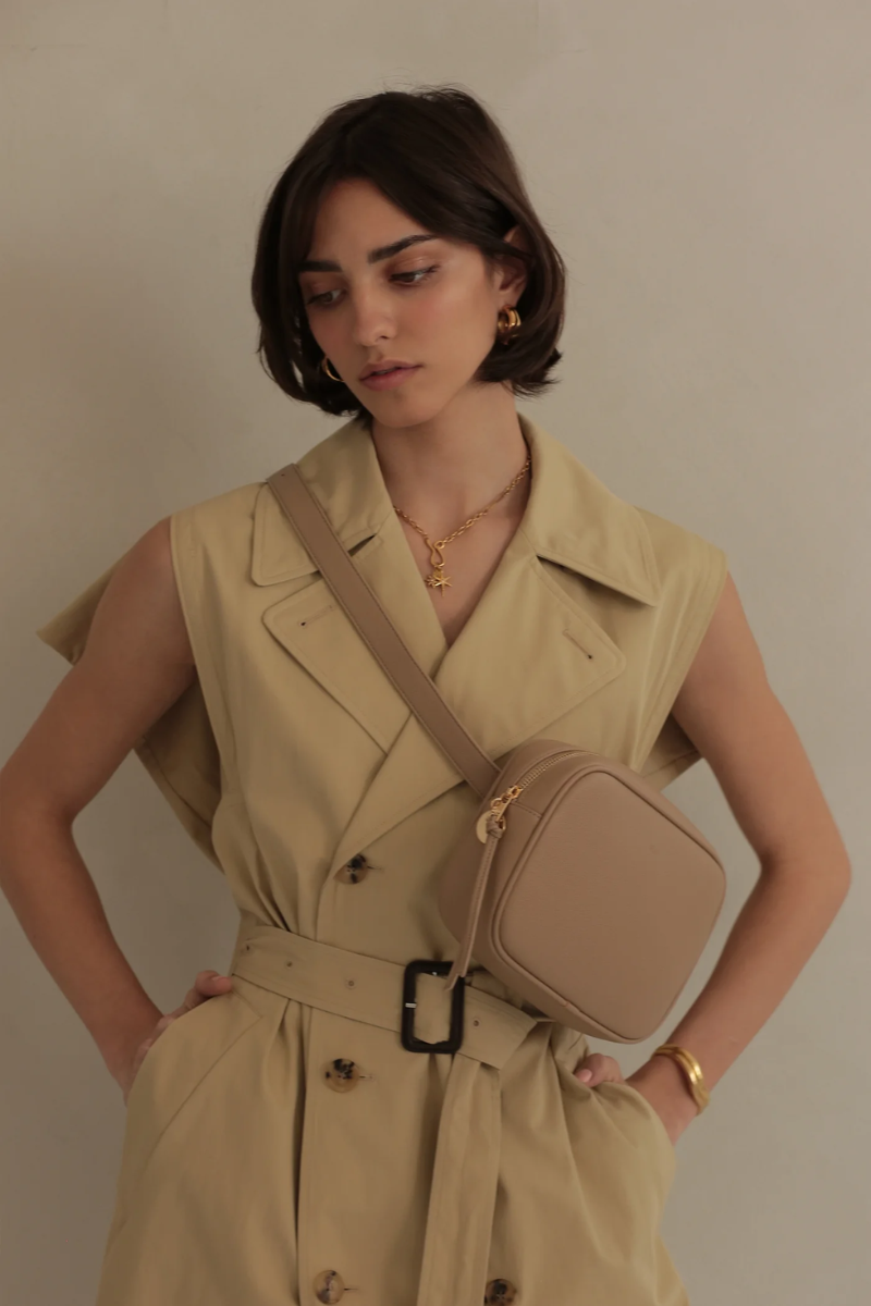 Wear it two ways, this shape is simple and sophisticated and hands-down the best hands-free shape. It's lightweight and roomy enough to fit all of your must have essentials. Remove the waist belt and transition it into a clitch or great organizer pouch when traveling.