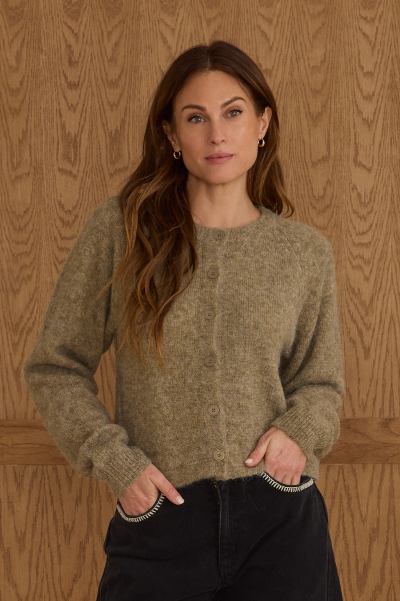 This fuzzy cardigan is a cozy layering piece with a soft hand-feel and classic button front. Perfect for adding warmth and texture to any outfit, it’s designed for everyday wear with timeless charm. Featured in a soft evergreen hue.