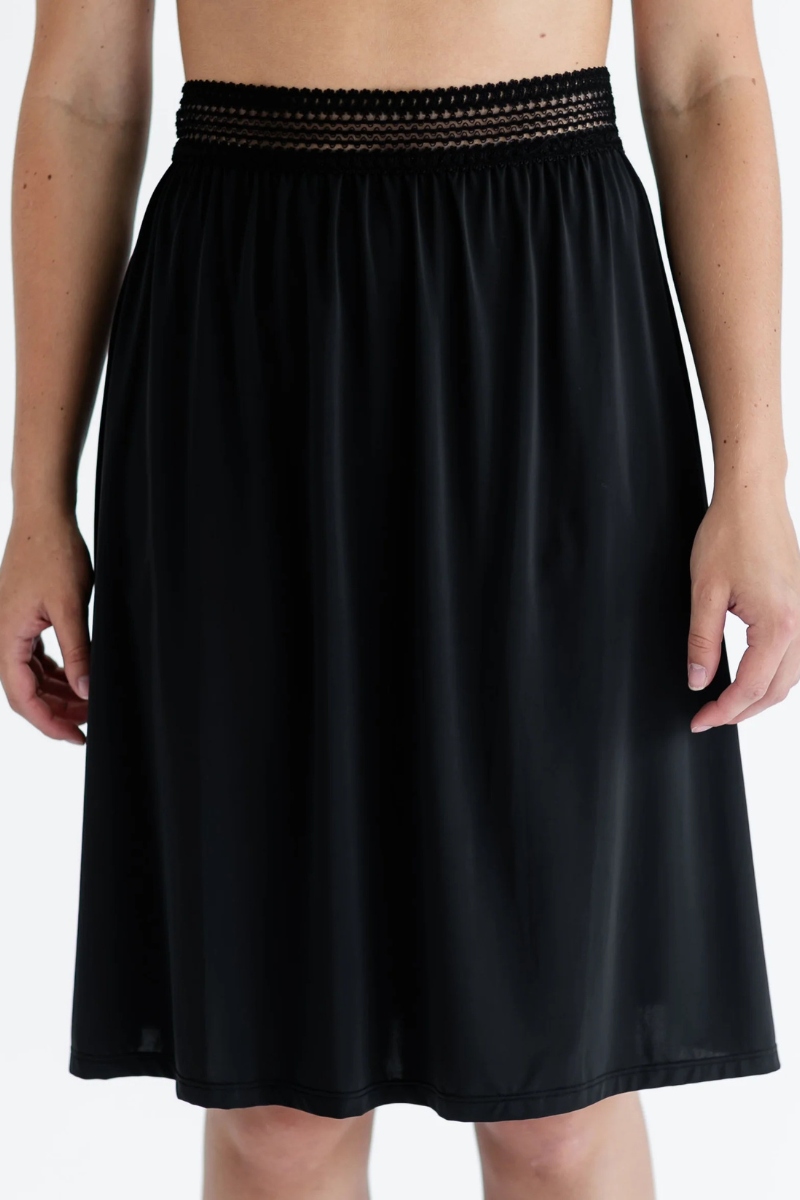 - The Women's Half Slip has soft, stretch lace around the waist to allow the rise of the slip to be customized, The lightweight, stretch fabric glides under your clothes without showing harsh lines through your clothes!