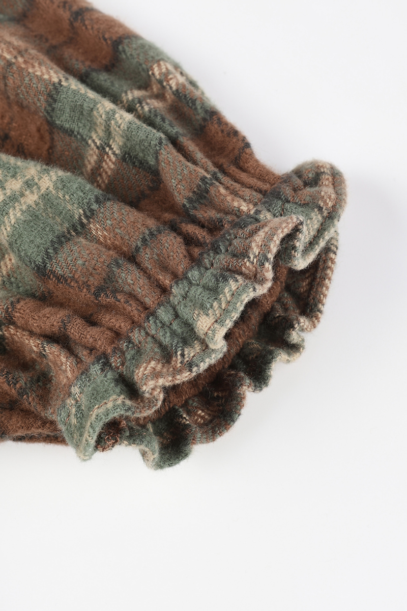 The Jolene Dress features a darling V-neck, puff sleeves and a baby doll-inspired silhouette for an effortlessly charming look. Coordinating bloomers included with sizes 3-6M - 18-24M. Featured in super soft ‘holiday plaid’ flannel.