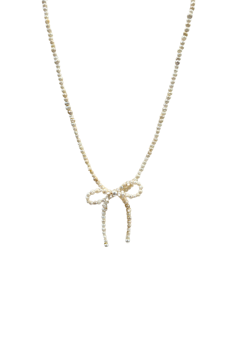 The Rayna Bow Necklace is a timeless addition to any jewelry collection, designed to complement both casual and elegant looks. Crafted with delicate freshwater pearls, this necklace features a beautiful gold-filled bow that adds a subtle yet striking statement to your ensemble.