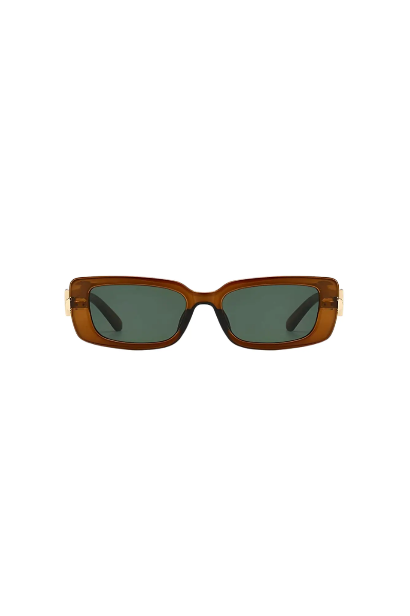 Introducing Stella - the perfect blend of fashion and function for your wardrobe and eyewear collection! These chic sunglasses elevate any look with their sleek design and timeless appeal. Whether you're strolling through autumn leaves or enjoying a sunny day out, Stella adds that touch of sophistication to your everyday ensemble. Featuring brown sheer frames, perfectly tinted green lenses and gold detailing.