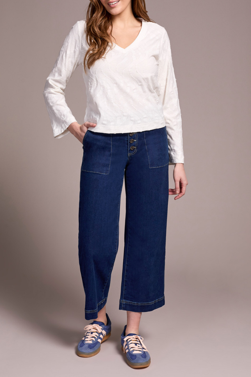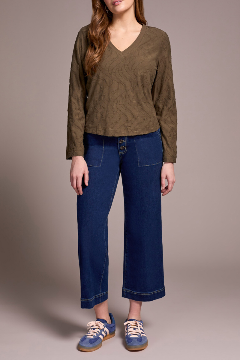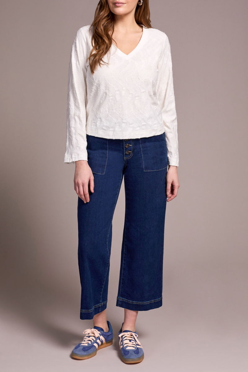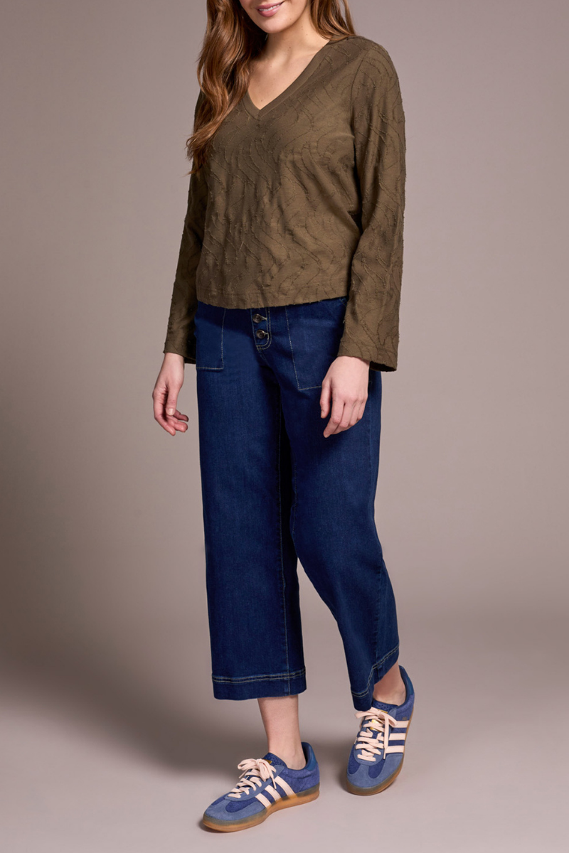Elevate your everyday style with this effortlessly chic textured blouse. Featuring a subtle tonal pattern, flattering v-neckline, and relaxed fit, it's perfect to dress up or down. Lightweight with just the right amount of detail, this blouse pairs perfectly with denim, skirts, or trousers for a polished yet easygoing look.