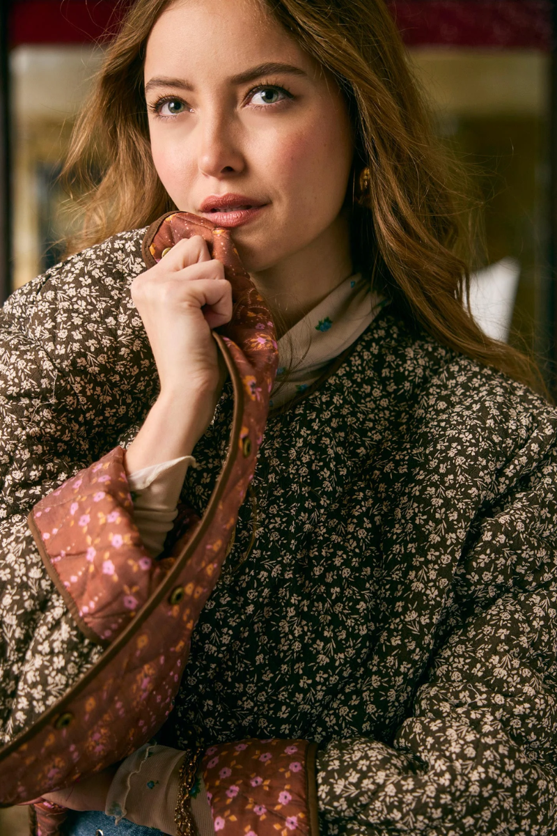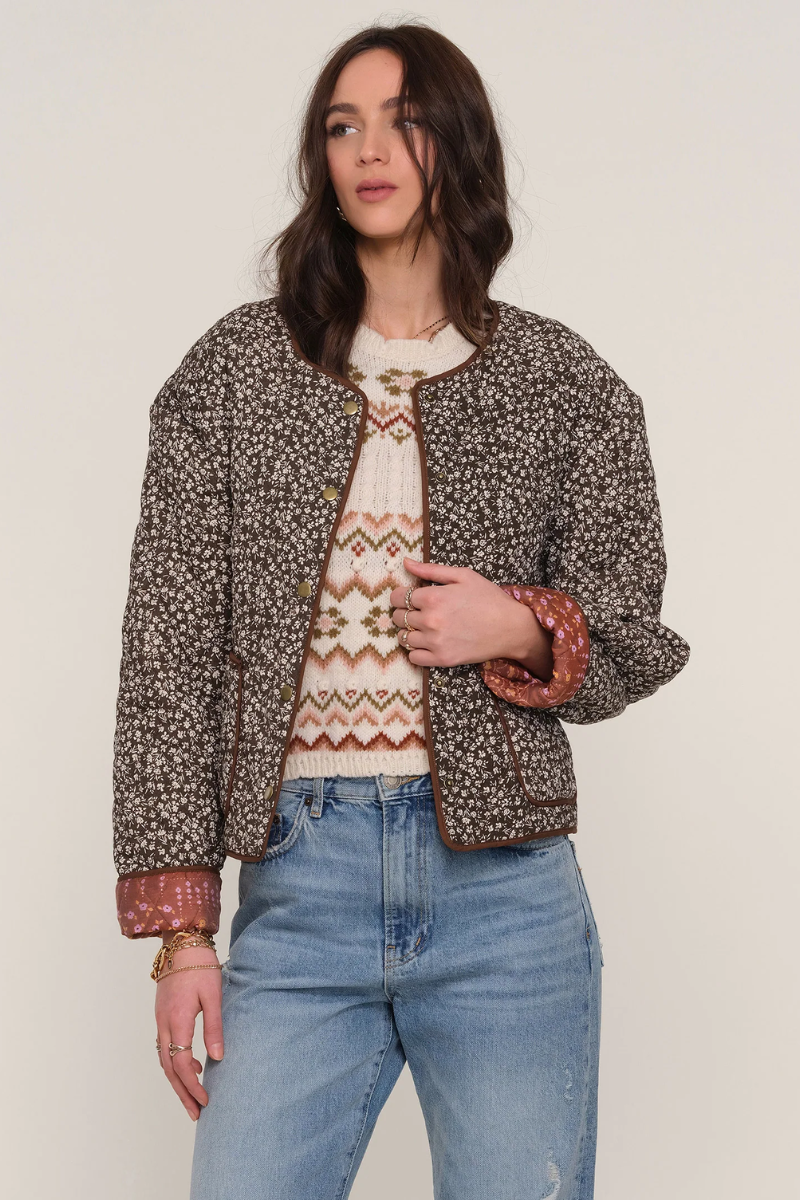 The Verna Jacket is the jacket of the season, and is 100% reversible! Throw it over literally any outfit. Made from a pretty flora cotton, it has a relaxed, cool fit and a snap front.